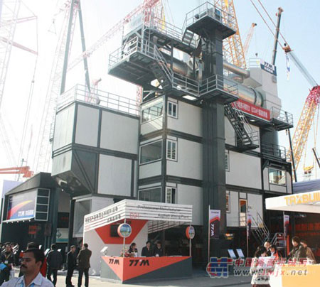 王希仁:在本次展會上,鐵拓機械展出瀝青混合料原生和再生成套設備,其中再生設備的展示將成為展會上的一大亮點。本套設備具備以下特點:成套設備模塊化設計,轉場快,安裝就位將更為方便快捷;根據工程需要,可調整其添加配合比,最大熱再生料添加比例可以達到 50%;舊料破碎不破壞原舊骨料級配;獨特的舊料加熱系統(tǒng)使再生瀝青料不接觸明火,舊混合料所含瀝青不被老化,燒毀;具有專利技術干燥滾筒結構有效地防止舊料加溫過程中粘附問題,燃燒后,尾氣進入原生機組再次燃燒,排放氣體達到國家標準;采用進口傳感器計量,計量精度達到國家標準,計量精準可靠;特殊的熱料輸送機構,使熱料輸送快捷;可采用煤氣發(fā)生爐,以產生煤氣為燃料,節(jié)能、環(huán)保。