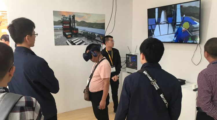 展會第一天,鐵拓機械VR展區(qū)吸引了眾多前往展臺參觀的客戶駐足體驗,在現(xiàn)場工作人員的幫助下,配套VR頭盔,然后開始沉浸在其中。